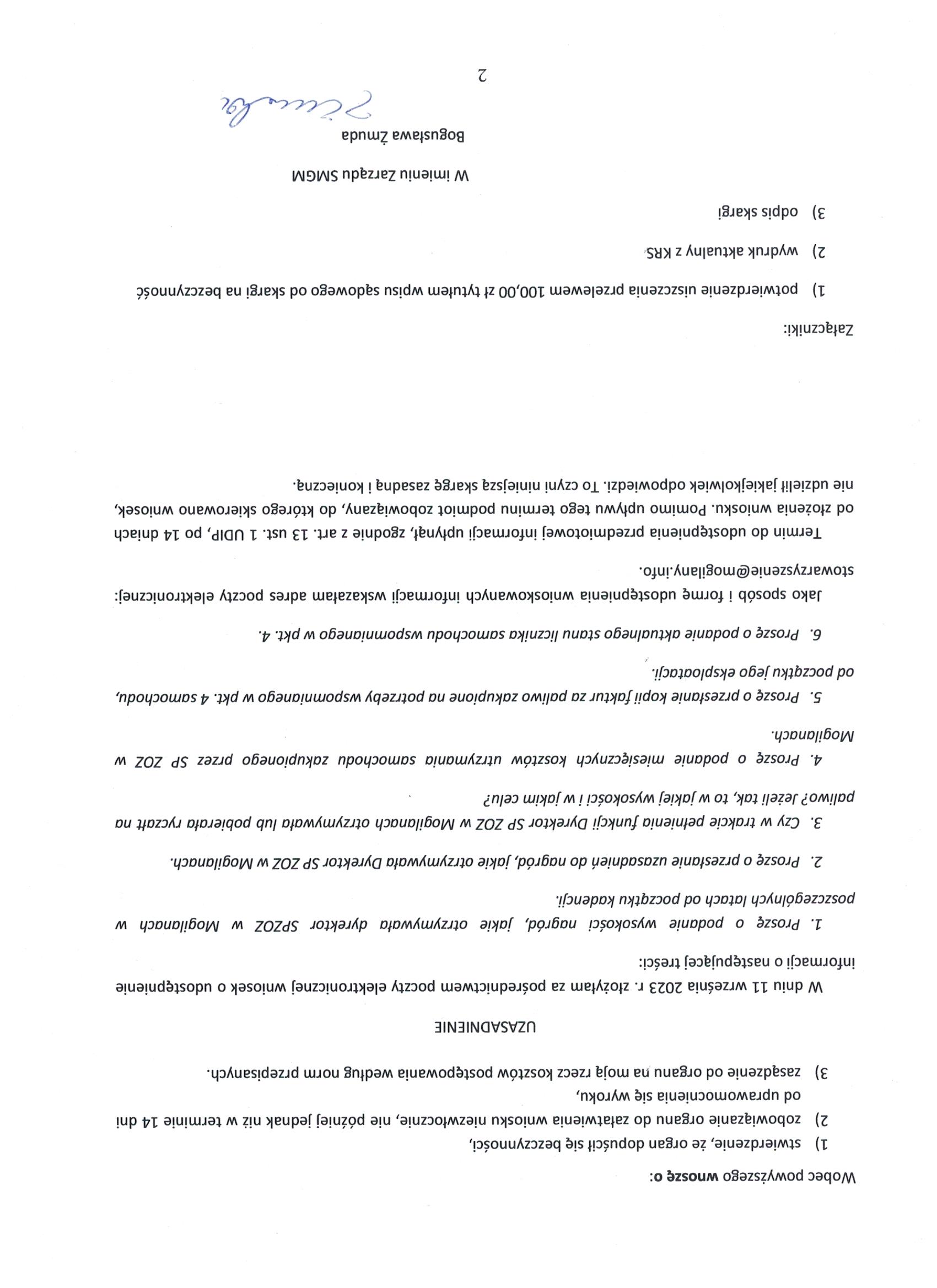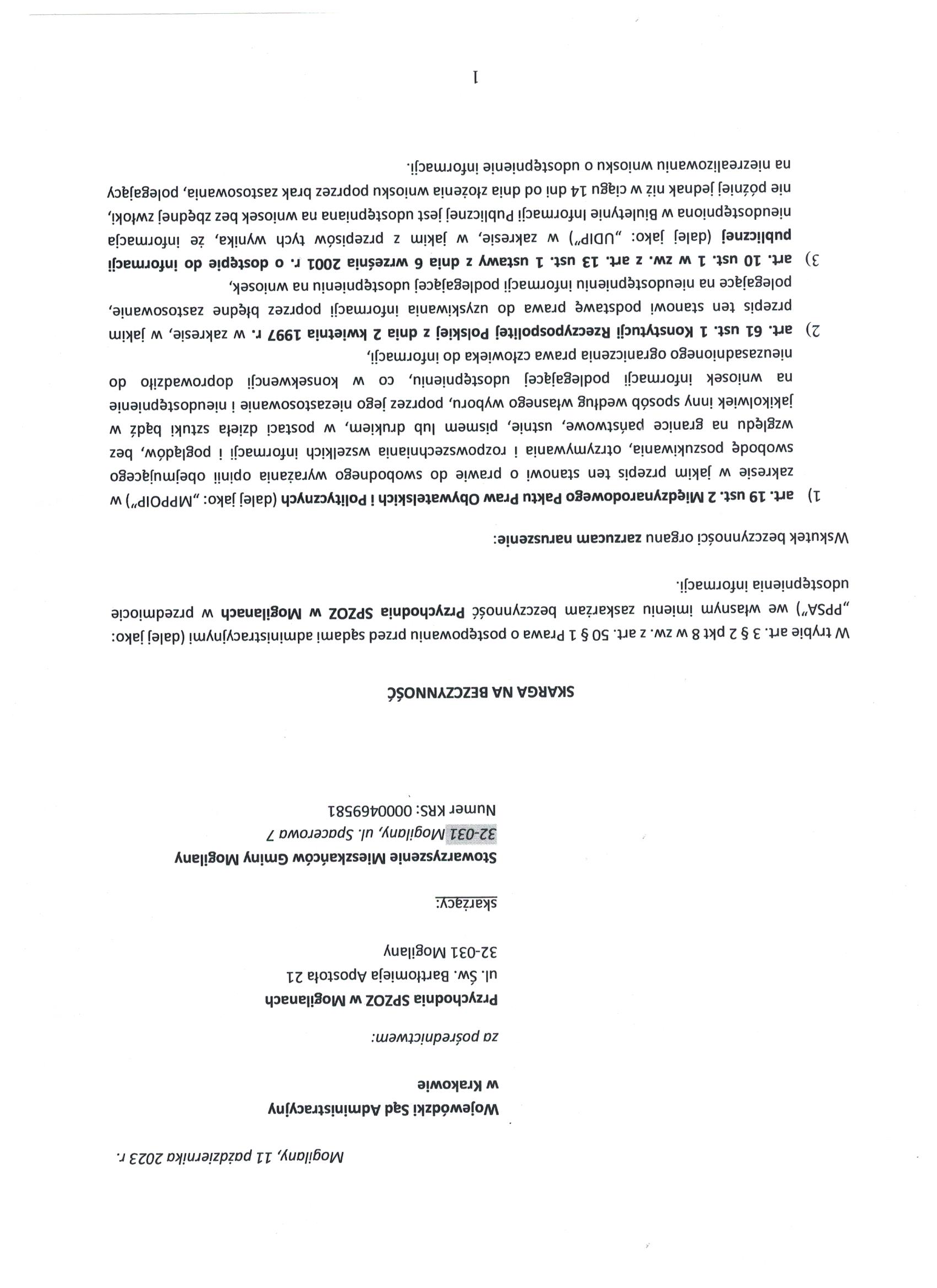 Ciąg dalszy perypetii związanych z uzyskaniem informacji publicznej od Dyrektor SPZOZ w Mogilanach.